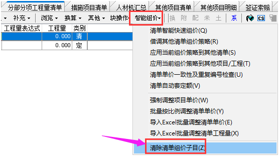 答:點(diǎn)擊智能組價(jià)按鈕下的清除清單組價(jià)子目,一鍵實(shí)現(xiàn)。