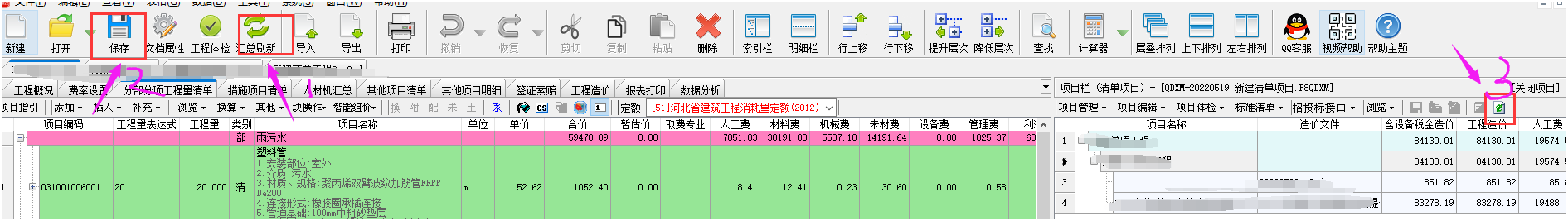 答:針對(duì)與p8qdxm的非單文件項(xiàng)目工程,它是跟單位工程數(shù)據(jù)聯(lián)動(dòng)的。如果出現(xiàn)了數(shù)據(jù)沒(méi)有同步匯總,需要按照以下步驟操作。 第一步打開(kāi)單位工程點(diǎn)擊匯總刷新,然后點(diǎn)擊保存。如果保存按鈕是灰顯,說(shuō)明數(shù)據(jù)可能沒(méi)有變化會(huì)導(dǎo)致正常匯總不了。可以采取隨便改動(dòng)一下數(shù)據(jù)再改回的方法,在保存按鈕綠顯的狀態(tài)下點(diǎn)擊保存。所有單位工程都刷新保存了之后,關(guān)閉單位工程,最后一步就是回到項(xiàng)目工程中點(diǎn)擊重新提取數(shù)據(jù)。 如下截圖所示: