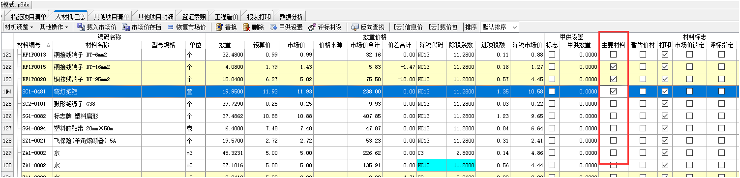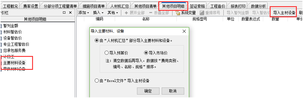 答:人材機(jī)界面勾選主要材料標(biāo)志后,切換到其他項(xiàng)目明細(xì)界面,點(diǎn)擊導(dǎo)入主材設(shè)備,在這個(gè)界面可以上下行移動(dòng)排序。