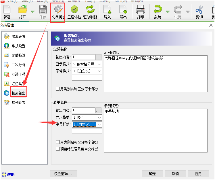 答:本身清單項(xiàng)目特征序號(hào)自動(dòng)有默認(rèn)排序,導(dǎo)入Excel版工程量清單之后項(xiàng)目特征序號(hào)出現(xiàn)了重復(fù)。 按照以下截圖,通過(guò)文檔屬性窗口的報(bào)表輸出功能,把序號(hào)樣式改成自定義即可。